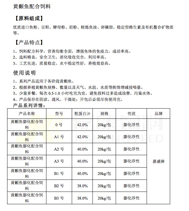 黃顙魚配合飼料